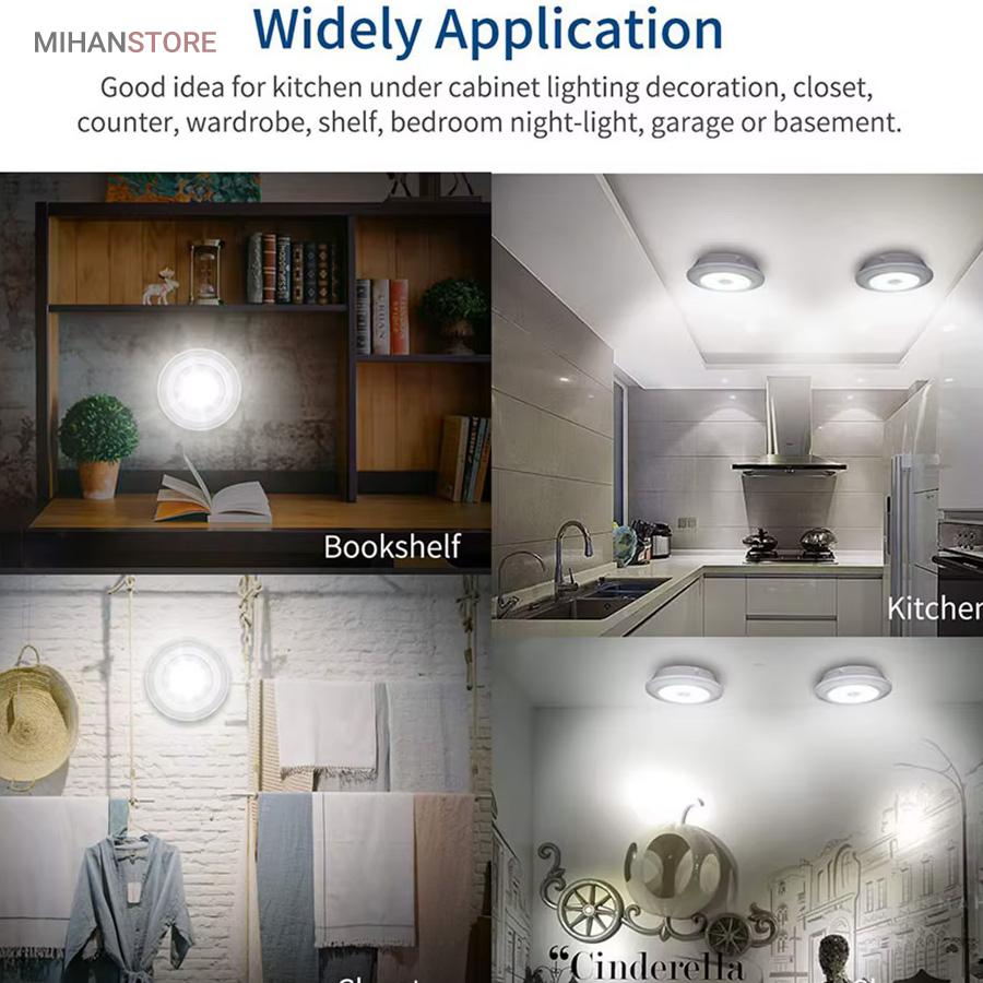 چراغها با استفاده از کنترل از راه دور با برد ۵ تا ۱۰ متر یا به صورت دستی از طریق فشردن قسمت مرکزی هر چراغ روشن و خاموش میشوند. در نتیجه حتی اگر چراغ در مکان مرتفع یا دور از دسترس نصب شده باشد بهراحتی میتوان از راه دور آن را کنترل کرد. طراحی بدون سیم باعث شده است که این چراغها برای نصب در هر مکانی مناسب باشند. نیازی به هیچگونه سیمکشی یا اتصال برق نیست؛ تنها کافیست ۳ عدد باتری AAA (برای هر چراغ) تهیه کنید و آن را در جای دلخواه بچسبانید.